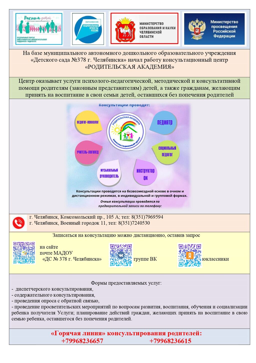В рамках реализации федерального проекта «Современная школа» национального проекта «Образование» государственной программы Российской Федерации «Развитие образования» открыты консультационный центр "Родительская академия".